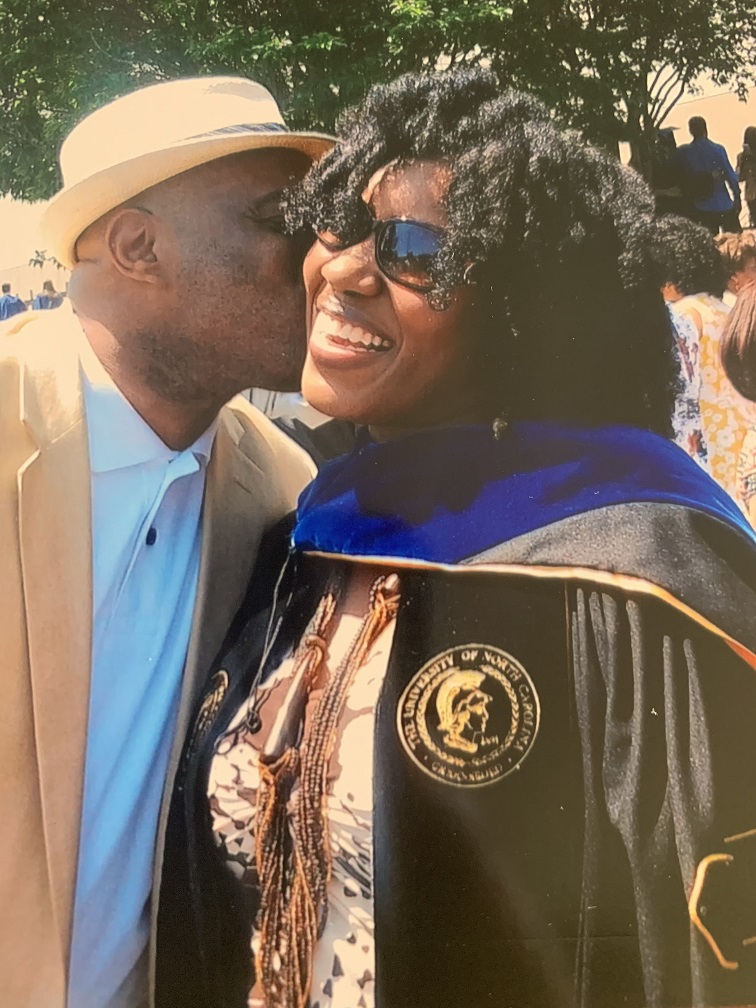 When I completed my Ph.D. in 2015, there was no one more proud than my dad. I dedicated my dissertation to him. I wrote, “To my father, who is the epitome of goodness.” I am grateful that my father taught me how to love people and how to believe in the good of humanity. In all the craziness that befalls us right now, I am able to lift my voice and keep pushing forward because my father has always given us hope. In response to ‘the talk’ that many Black parents have with their children concerning their interactions with law enforcement, I wrote a column for the Winston-Salem Journal regarding how my Black son must navigate the world differently than his White counterparts. My father read the article in the paper and texted me, “Good morning my beautiful, awesomely blessed, powerful, young Black woman of God. I will definitely never forget that story because that is life, and you expressed your motherly wisdom with so much perfection. I love you dearly.” To my father’s text, I responded, “Thank you dad. I love you and thank you for putting so much love in my heart to be able to give back to the world!” You can see what an impact my father has had on my life and the special place that he continues to hold in my heart. Now, I will leave you with my father’s words. For decades (and to this very day) his voicemail from his “flip phone” still says, “Hang on in there. If no one’s told you today, God loves you and so do I.”