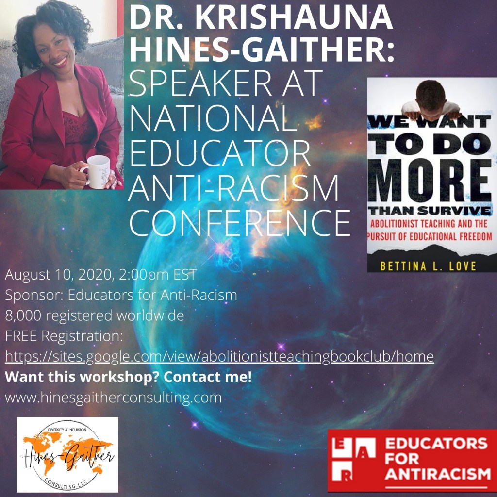 Krishauna Hines-Gaither, Ph.D. is a sought-after diversity consultant. She is the owner of Hines-Gaither Consulting, LLC, a firm that is dedicated to meeting all of your diversity and inclusion needs. Dr. Hines-Gaither also serves as the Vice President for Equity, Diversity and Justice at Mount Saint Mary's University-Los Angeles.