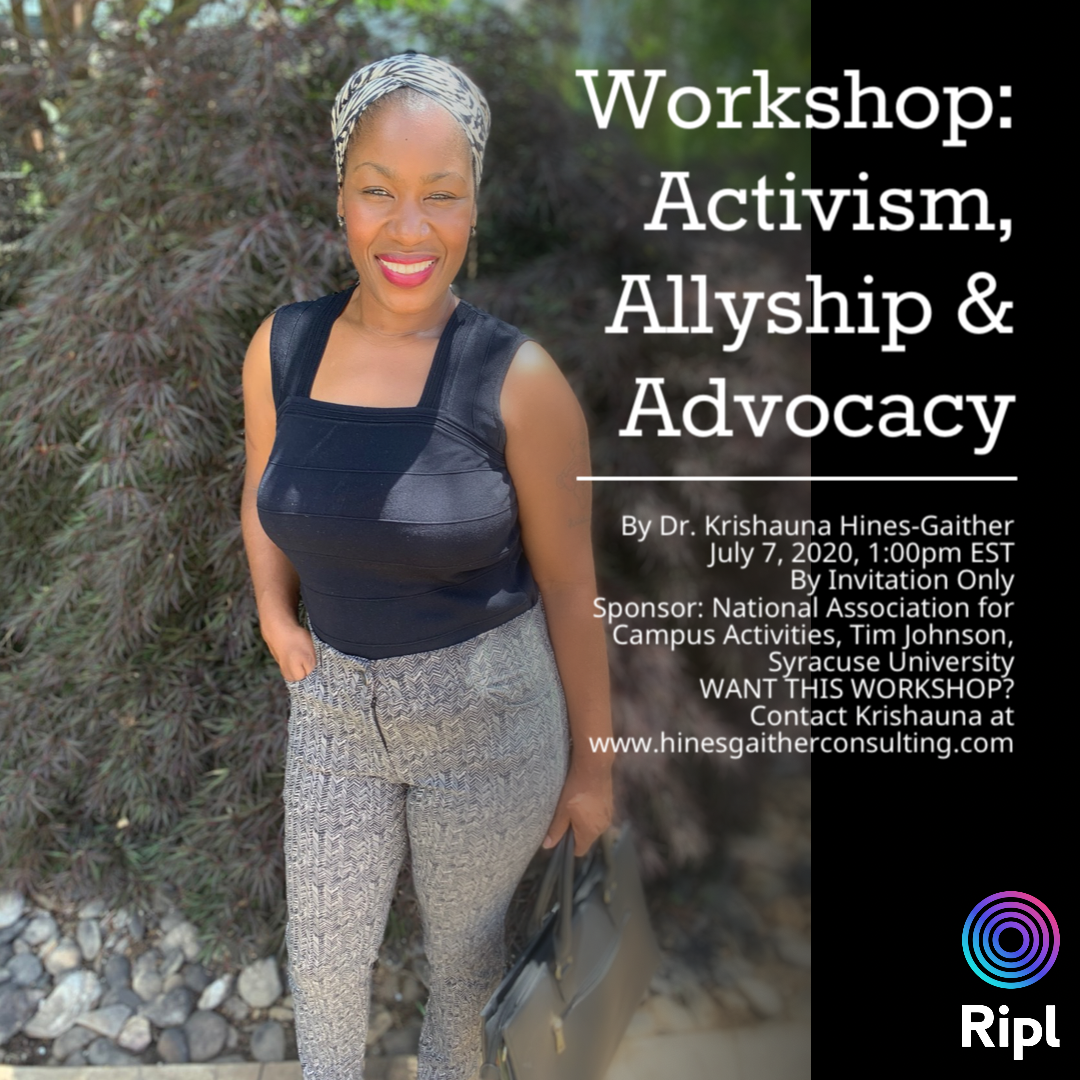 Dr. Krishauna Hines-Gaither will share tips and insights on sustaining relationships and offering support across differences. She will share tips that are applicable in many situations including the current events related to police brutality. She will focus on white allyship regarding police violence against predominantly black and brown bodies. Communities of color will also benefit from this workshop, and gain additional tools to navigate cross-racial engagement.