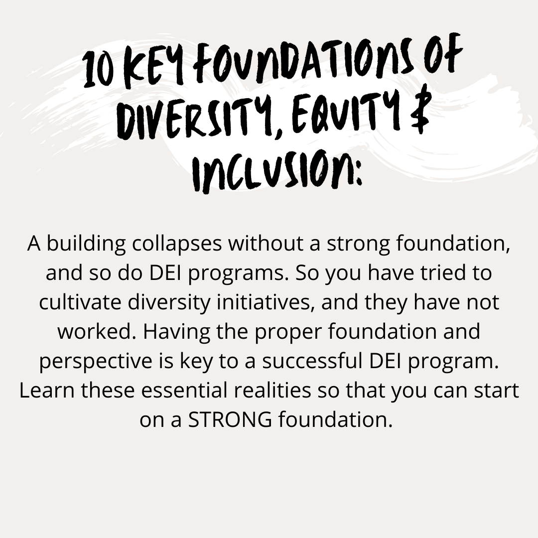 A building collapses without a strong foundation, and so do DEI programs. So you have tried to cultivate diversity initiatives, and they have not worked. Having the proper foundation and perspective are key to a successful DEI program. Learn these essential realities so that you can start on a STRONG foundation.