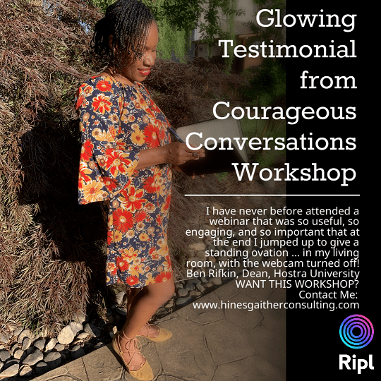 Hines-Gaither Consulting, LLC is skilled at facilitating challenging conversations in such a way that builds bridges and sustains communication. No topic is too difficult. We offer tried and true strategies for bringing private conversations into the forefront. We also offer support and training for anyone interested in gaining the skills to facilitate difficult dialogues.
